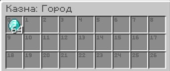 Казна принимает только предмет, назначенный мэром (по умолчанию алмазы). Неподходящие предметы возвращаются игроку при закрытии.