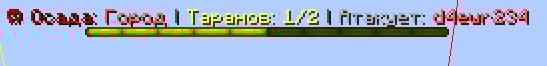| BossBar | Жёлтый (подготовка) → красный (активная осада) с таймером |
